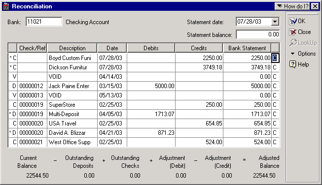 When reconciling a bank account, all Check Register