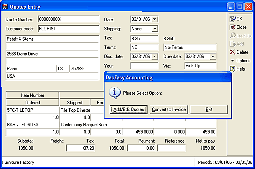realizing a sale, you have the option to convert the stored quote to an invoice for more efficient