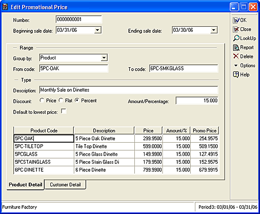 the Accounting module. Now you may set up special promotional pricing for specific items