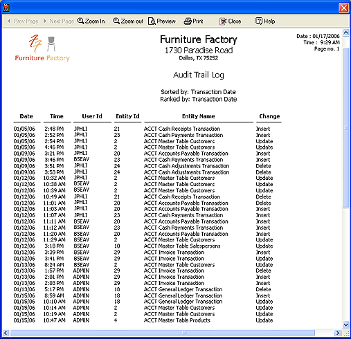 user activity in the system and, optionally, a history of changes made. Audit Trail keeps track of